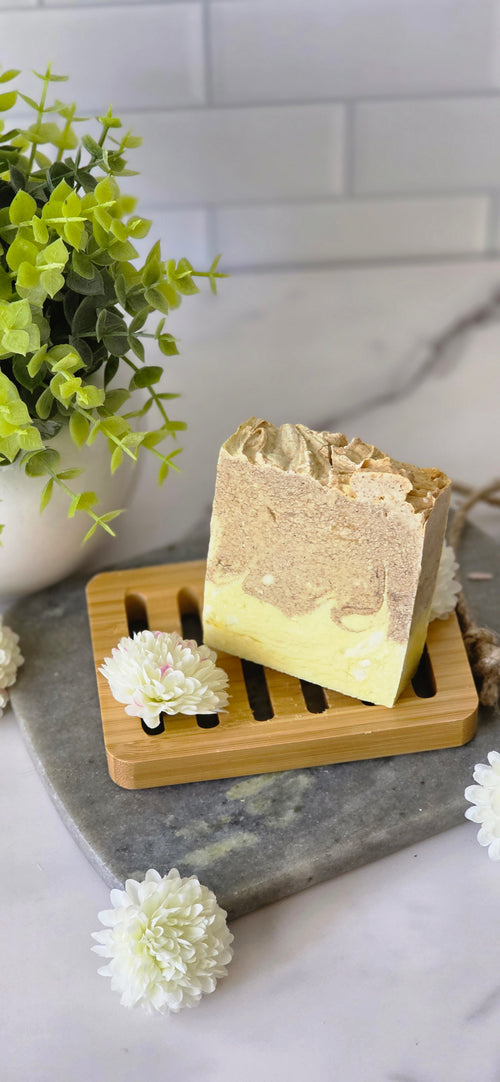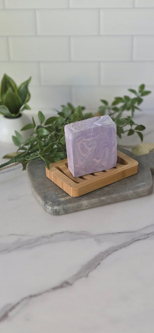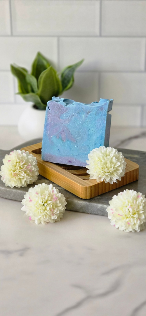 Lavender Dreams is formulated with olive oil, palm oil, coconut oil, and lye, delivering a balanced blend of moisture and cleansing properties. The lavender vanilla scent provides a soothing aromatic experience. This composition can enhance skin hydration and promote a calming atmosphere, making it suitable for daily use. Product weight 5.5oz